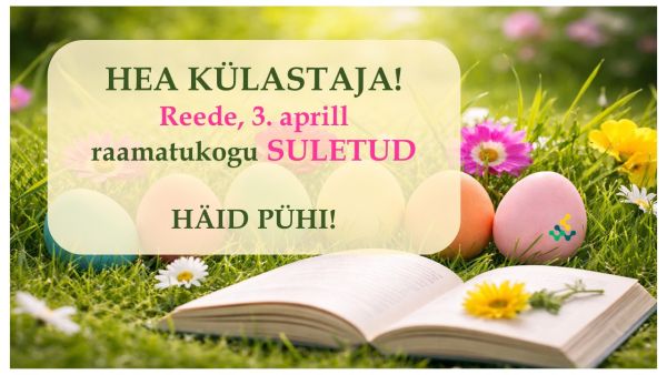 1. aprillil kell 10.30–12.00 raamatuid laenutada, tagastada ega järjekorda lisada.
