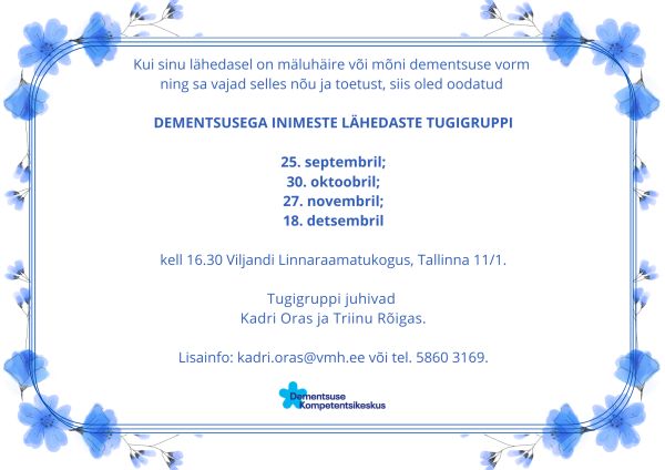 Tugigrupp on mõeldud Teile, kes Te hoolitsete dementsusega või mäluhäiretega lähedase eest.