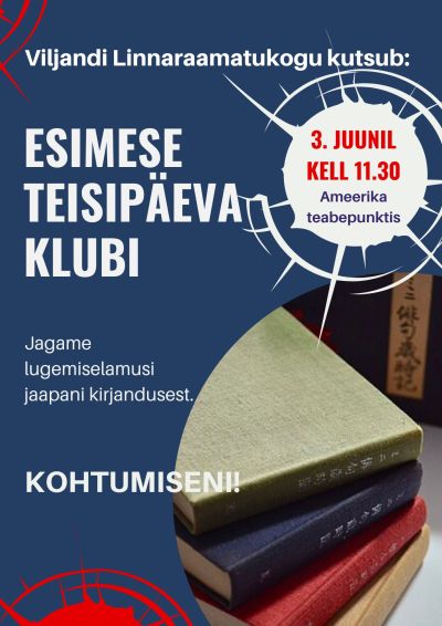 Esimese Teisipäeva Klubisse on oodatud kõik raamatuhuvilised. Saame kokku iga kuu esimesel teisipäeval kell 11.30 raamatukogu 2. saali Ameerika teabepunktis, et loetu üle ühiselt arutleda ja avastada enda jaoks seeläbi ka midagi täiesti uut. Igaks tulevaseks kokkusaamiseks mõtleme koos uue teema või autori, kelle loomingust enam teada sooviksime.