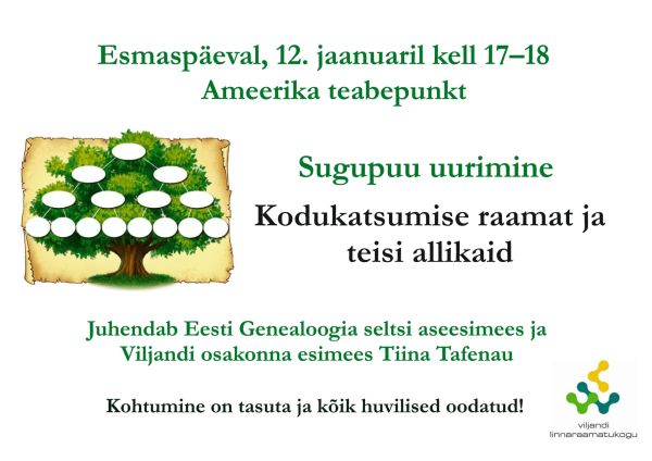 12. jaanuaril kutsume Teid sugupuu uurimise loengule "Kodukatsumise raamat ja teisi allikaid"