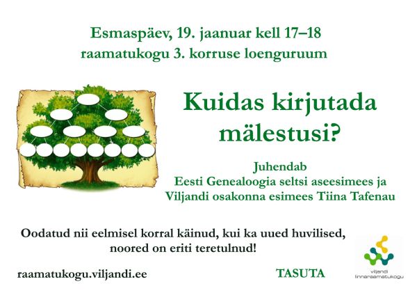 Esmaspäeval, 19. jaanuaril ootame Teid taas raamatukogusse mälestusi kirjutama