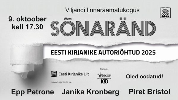 Neljapäeval, 9. oktoobril jõuab meie raamatukogusse SÕNARÄND 2025