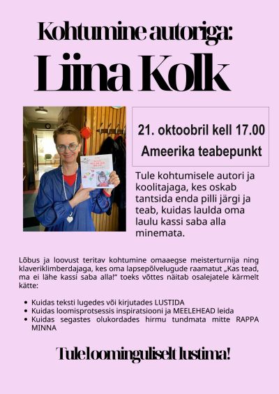 21. oktoobril olete oodatud kohtumisele autori ja koolitaja Liina Kolgiga