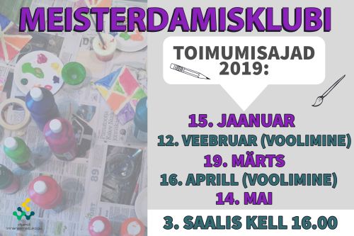 14. mail kell 16 on raamatukokku oodatud kõik meisterdamishuvilised lapsed meisterdamisklubisse, kus peale meisterdamise loeme mõnda eriti huvitavat raamatut.