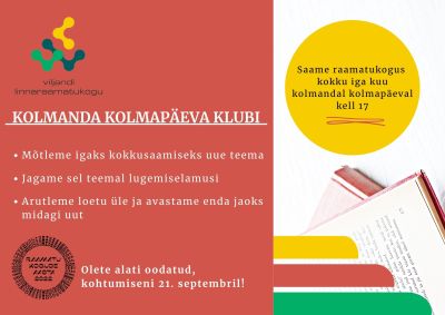 Viljandi Linnaraamatukogu Kolmanda Kolmapäeva Klubi saab kokku kolmapäeval, 21. septembril kell 17.00!